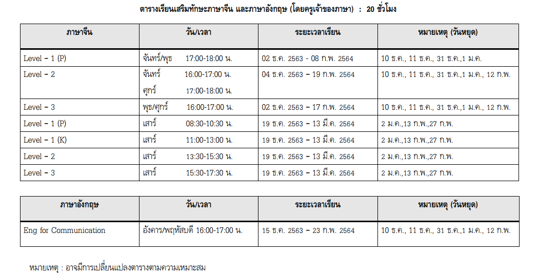 เปิดคอร์สเสริมทักษะ ภาษาอังกฤษ ภาษาจีน